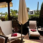 De 2-slaapkamer Cozy Villa Marina, Iris Fase 1, Wifi is 3 km verwijderd van Playa Flamingo gelegen en biedt een dompelbad voor extra ontspanning. De villa verwacht gasten op een terras met een zwembad.